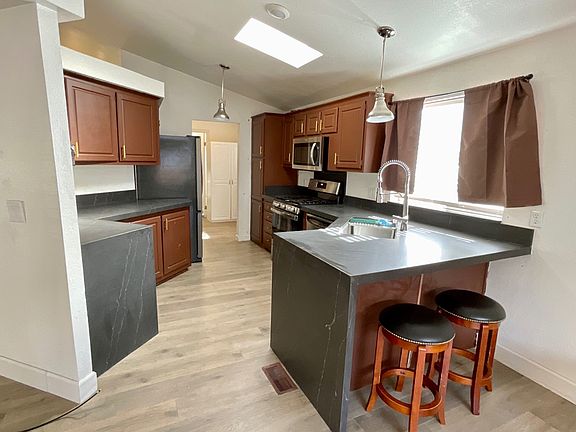 This beautifully maintained 2/bed, 2/bath manufactured home offers exceptional flexibility with two additional bonus rooms, ideal for a home office, craft space, or guest area. The open living room features vaulted ceilings and large windows that fill the space with natural light, enhancing the airy feel throughout the main living areas. The kitchen showcases a striking soapstone counter with waterfall edges, stainless steel appliances, a trash compactor, and built-in microwave, creating a stylish and functional cooking space. The primary suite includes a soaking tub, step-in shower, and ample cabinet storage, providing both comfort and convenience. Additional features include a spacious laundry room with extra cabinetry, a covered deck perfect for outdoor relaxation, and a covered carport with two storage closets for added utility. The exterior is surrounded by water-wise landscaping and mature trees that enhance the setting. Located in a family park, this home combines space, upgrades, and functionality in a move-in-ready setting.This beautifully maintained 2-bedroom, 2-bath manufactured home offers exceptional flexibility with two additional bonus rooms, ideal for a home office, craft space, or guest area. The open living room features vaulted ceilings and large windows that fill the space with natural light, highlighting the updated LVP flooring throughout the main living areas. The kitchen showcases a striking soapstone counter with waterfall edges, stainless steel appliances, a trash compactor, and built-in microwave, creating a stylish and functional cooking space. The primary suite includes a soaking tub, step-in shower, and ample cabinet storage, providing both comfort and convenience. Additional features include a spacious laundry room with extra cabinetry, a covered deck perfect for outdoor relaxation, and a covered carport with two storage closets for added utility. The exterior is surrounded by well-kept, water-wise landscaping and mature trees that enhance the setting. Located in a family park, this home combines space, upgrades, and functionality in a move-in-ready setting.