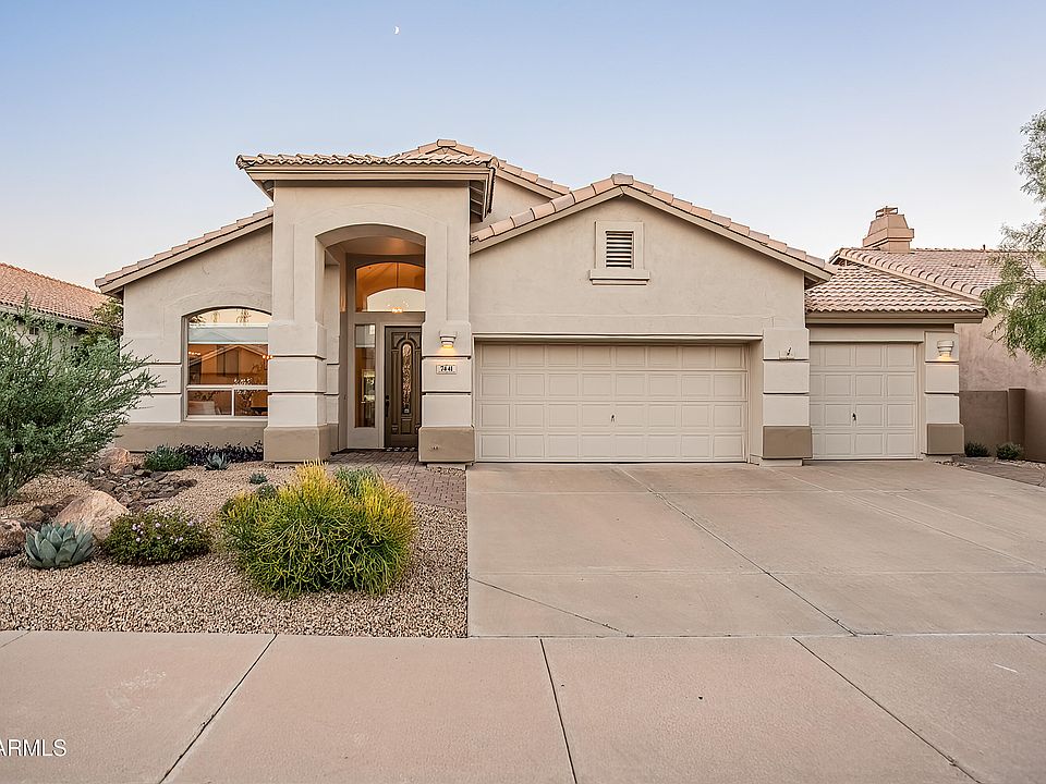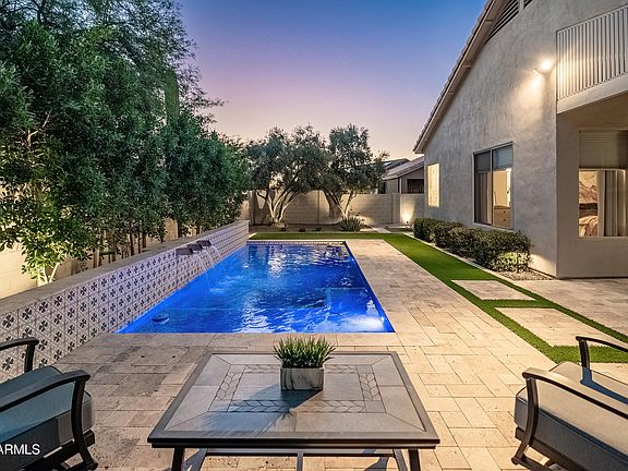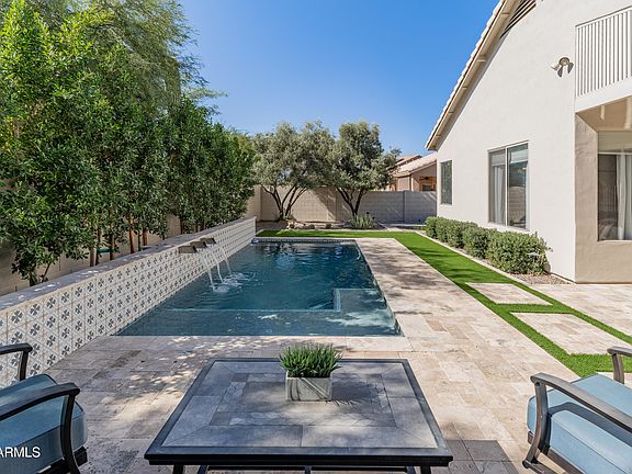 A rare find in the prestigious Grayhawk community. This stunning single-level home sits on a quiet north/south lot and has been completely reimagined from top to bottom—blending timeless design with modern sophistication. Every detail of the 2022 full renovation was thoughtfully curated, showcasing all-new flooring, cabinetry, countertops, appliances, sinks, toilets, glass enclosures, lighting, ceiling fans, window treatments, and baseboards. Major updates also include a new roof, soft water system, and fresh interior and exterior paint. The chef's kitchen features sleek quartz countertops and stainless-steel appliances (induction cooktop), seamlessly opening to a warm, inviting family room anchored by a cozy fireplace. Additional upgrades include new sliding glass doors in both the great room and 3rd bedroom, along with an epoxy-coated garage floor. The backyard was completely transformed in 2023 into a private desert sanctuary, featuring all-new landscaping, irrigation, lighting, and artificial turf. Enjoy a sparkling new pool with custom scuppers and a propane gas fire bowl - the perfect setting for relaxation or entertaining under the Arizona sky.
