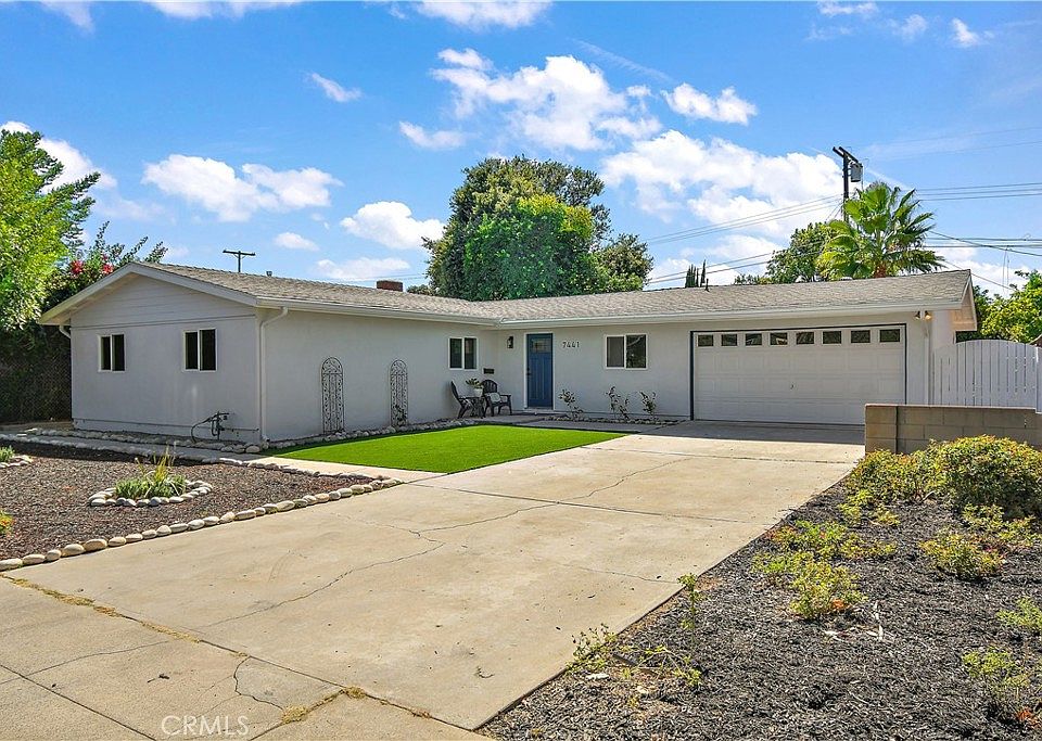 This beautifully upgraded Canoga Park residence offers the perfect blend of modern amenities and classic charm. Meticulously renovated from top to bottom with new subpanel, mood-controlled canned lighting, stylish new cabinetry, hardware, doors, and windows. The sleek laminate flooring enhances the home's contemporary appeal. Step inside to discover an open-concept living space that seamlessly integrates the kitchen, dining room, and living room, complete with a cozy fireplace ideal for family gatherings. French doors lead to a spacious, low-maintenance backyard, perfect for outdoor entertaining and relaxation. The home features a well-thought-out split floorplan: the primary and second bedrooms are situated at the front of the home, while a versatile third bedroom with a private entrance is located at the rear. This additional room can easily serve as a den or office, depending on your needs. Both the primary and guest bathrooms have been tastefully remodeled with elegant vanities, stylish tile work, and frameless shower enclosures. An energy-efficient HVAC system ensures year-round comfort. The property boasts excellent curb appeal with water-wise landscaping and an automatic drip system for easy maintenance. There is ample space along the north side of the driveway for potential RV parking. The two-car garage includes laundry hookups and direct access to the home. A mature grapefruit tree in the backyard not only provides delicious fruit but also offers pleasant shade. If you're seeking a move-in ready home with modern upgrades and inviting features, this Canoga Park charmer is the perfect choice.