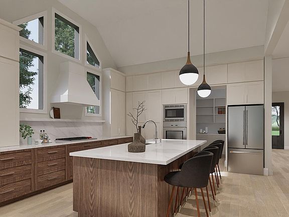 Linear fireplaceElegant finishesGourmet kitchenCoffered ceilingWide plank hardwoodsVaulted en-suitesUpgraded trim