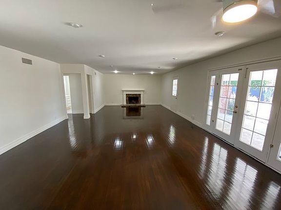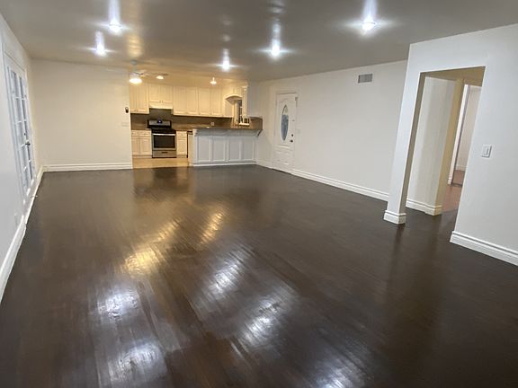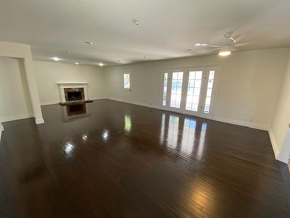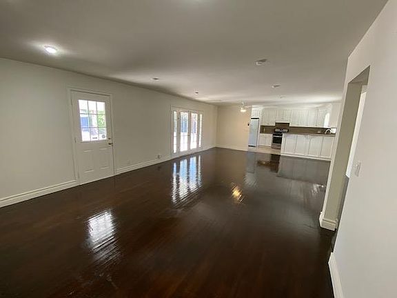 Beautiful single family home with a large front and backyard. Newly updated unit with refinished wood flooring and freshly painted walls. Large open living room with dining area and kitchen. Beautiful fireplace corner with bright recessed lighting. Large French doors open to the backyard. 3 bedrooms located in a hallways with 2 hallway bathrooms. Located past the kitchen and laundry area is a suite with attached bathroom and direct access to the backyard. This bedroom has its own split unit A/C.