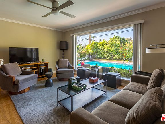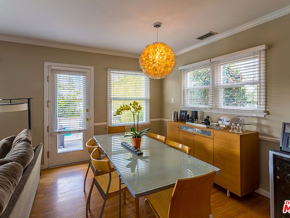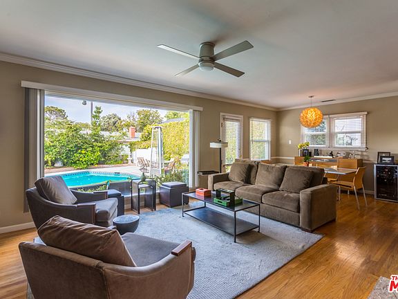 Gorgeous tree lined street leads you to this beautiful remodeled home with an open floor plan. Walk into a private entrance then move forward to rear living room and dining room with fireplace, beautiful hardwood floors; open to the yard and sparkling pool. Remodeled kitchen w/ granite counters, stainless steel appliances, pantry & breakfast bar. All bedrooms with new refinished hardwood floors. Rem. bath w/ granite counter, soaking tub and separate shower. Fabulous rear yard with large patio, pool, spa and lush landscaping. Great curb appeal. FA & AC systems, newer roof, freshly painted throughout, LAX retrofitting, w/ newer windows, & ext. doors & auto sprinkler system.
