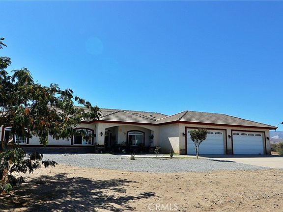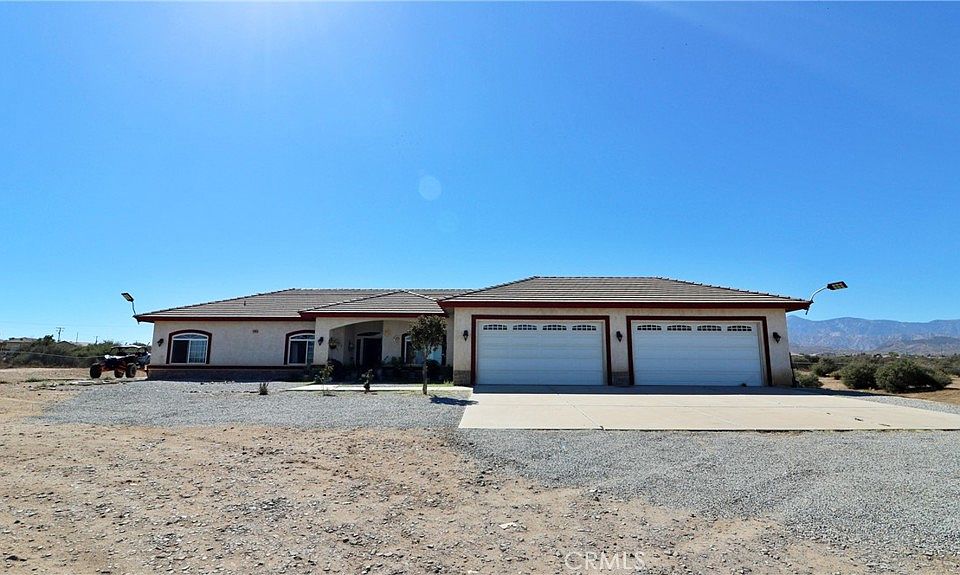 Beautiful Modern Ranch Home with Pool & Mountain Views on 2+ Acres. Welcome to this spacious 5-bedroom, 3-bath single-story home offering 2,462 sq. ft. of living space on over 2 acres of open High Desert land. Built in 2006 with modern style and comfort in mind, this property blends rural privacy with convenient amenities. Step inside to find an inviting open floor plan with high ceilings, tile and wood flooring, and a cozy wood-burning stove that anchors the family room. Large picture windows fill the living spaces with natural light and capture peaceful desert and mountain views. The chef’s kitchen features dark cabinetry, granite countertops, double ovens, and ample counter space—perfect for preparing meals and entertaining guests. A formal dining area sits just off the entry, ideal for family gatherings or dinner parties. The home offers five spacious bedrooms, including a well-appointed primary suite with plenty of natural light and space to relax. Three full bathrooms provide convenience for family and guests alike. Outside, you’ll find room to roam on 2.15 acres, including a private in-ground pool for cooling off on summer days, and a 4-car attached garage providing plenty of space for vehicles, storage, or workshop use. With tile roofing, central heat and A/C, and a modern frame construction, this home is designed for comfort and durability. Enjoy quiet desert living with easy access to nearby highways, shopping, and schools. Whether you’re seeking a peaceful retreat, space for your toys, or a property with room to grow, this home has it all.