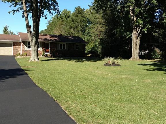 Brick faced ranch design with attached garage and much more! Situated on a 1.4 acre site with 140' frontage and nice spacing/buffering from adjacent homes. Great rear yard offering a fenced-in section, patio space, two-tiered decking with gazebo, hot tub and above ground pool, large shed with wood floor, electrical, wireless, cable & water service, a 30 x 12' cement pad; abundant play area! Cherry & apple trees, blueberries, raspberries, several healthy plants and landscaping accents! 25' x 25' Fenced-in raised bed garden, Double wide, asphalt driveway with turnaround and fresh seal coating. The home is vinyl sided with vinyl replacement windows. The original structure includes three bedrooms, full bathroom, living room, dining area and kitchen. A large addition facilitates a family room, master bedroom and second bathroom. Dining area is open to the kitchen with skylight and ceiling fan. Kitchen offers cherry cabinetry, quartz counter tops, skylight and all appliances! Sharp family room with unique beamed ceilings, brick fireplace & wood box, pass through to the kitchen and ceiling fan. Newer exterior doors, storm doors, closet doors, flooring, hot water tank and more. Warrentied water-proofed and well-insulated basement with glass block windows. Fresh paint and trim-work.