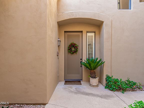 Experience the allure of this beautiful townhome in the gated Cachet at Las Sendas! Providing 3 beds, 2 baths, & a 2-car ground floor garage. Discover an inviting living & dining room combo with a dry bar! Natural light filled the home, complemented by plantation shutters, two-tone paint, and tile flooring w/carpet in bedrooms. The kitchen boasts SS appliances, travertine backsplash, recessed lighting, a pantry, ample cabinetry, and a breakfast bar. Main bedroom has an ensuite with dual sinks, separate tub/shower, & a walk-in closet. Adding to the home's charm are two balconies, accessible via sliding doors from the main bedroom & living area, offering serene views for enjoyment! Close to Community amenities - a golf course, pool, spa, pickleball, hiking, bike trails, & etc. Welcome home!