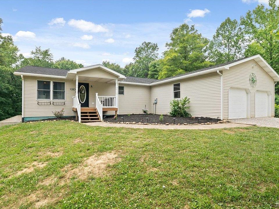 Welcome to this charming home! Nestled on a private lane, this remarkable 3-bedroom, 3-bathroom home is situated on a sprawling 3.09-acre lot, adorned with majestic wooded areas and scenic trails. With its open floor plan, the kitchen, great room, and dining area seamlessly flow together, creating a warm and inviting ambiance. Step into the kitchen, where new appliances await your culinary adventures. The convenient eating bar provides a delightful space for casual meals and entertaining guests. As you prepare your favorite dishes, enjoy the picturesque view of the property from the kitchen and great room, allowing nature's beauty to be part of your daily routine. Retreat to the owner's suite, that offers a spacious layout and a massive walk-in closet, providing ample storage for all your belongings. The large laundry room, conveniently located off the garage, adds a touch of practicality to your daily chores. Venture downstairs to discover the walk-out basement, boasting a full bathroom, plentiful storage options, and a vast room awaiting your creativity. Whether you envision a family room, a recreational area, or an entertainment hub, the possibilities are endless. Complete with an attached 2-car garage, this home provides convenience and security for your vehicles and storage needs. Embrace the tranquility of your surroundings as you relax on your property, relishing the beauty of nature and the peace of seclusion. Don't miss out on this exceptional opportunity to own a home that offers both privacy and natural serenity. The home is close to Jasper, I69, and approximately 30 minutes from Toyota. Updates per Seller: Aug 2022-new water heater. Dec 2022-new appliances, water softner & whole house filtration, new flooring in 2 bedrooms, entire upstairs modern paint update, Jan 2023-new carpet in basement. June 2023-new backsplash in kitchen, painted basement floor