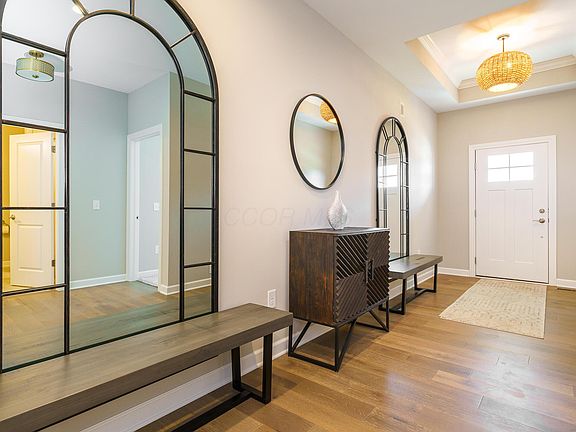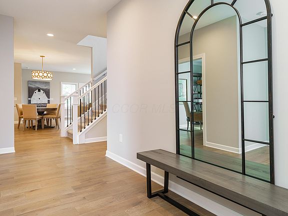 Model Home - Scioto Meadows North This is your final opportunity to own a brand-new home in the exclusive enclave of Scioto Meadows North—an intimate neighborhood of just 20 custom homes in the heart of Powell.This beautifully designed 3-bedroom, 4-bath home offers upscale finishes and quality craftsmanship. The open floor plan features a gourmet kitchen with quartz countertops, 42'' cabinets, under-cabinet lighting, stainless steel appliances, and hardwood floors—all beneath smooth ceilings for a modern, clean look.The first-floor primary suite includes a custom closet system and a luxurious en-suite bathroom. Upstairs, a spacious bonus room, full bath, and additional bedroom provide the perfect guest retreat.The finished basement is ideal for entertaining, complete with a bar and a full bath. Step outside to a screened-in porch overlooking a large, private end lot with green space—plenty of room to expand with additional outdoor living or a custom patio.For added convenience, this home can be purchased fully furnished. Located just off Home Road in desirable Scioto Reserve, this model home offers luxury, privacy, and move-in ready ease—all in a premium Powell location.