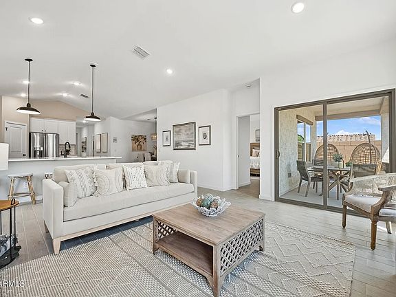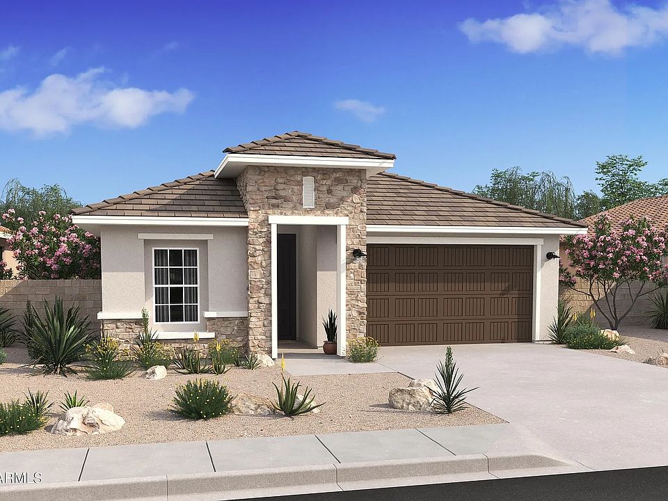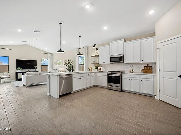 Welcome to your BRAND-NEW and MOVE IN READY dream home with a panoramic mountain view nestled in the heart of a vibrant community that offers a variety of recreation areas! This stunning property offers a perfect blend of modern comfort and timeless elegance. This spacious house offers 5 bedrooms and 3 full baths, expertly designed with Farmhouse-inspired interior selections. The gourmet kitchen features White 42-inch cabinets, Carrara Miska quartz counters, and GE stainless-steel appliances. The open great room and dining area with adjacent covered patio are ideal for entertaining and everyday life. This meticulously maintained home provides ample space for relaxation and entertainment. Step inside to discover an inviting open floor plan illuminated by natural light cascading through large windows. The spacious living area features high vaulted ceilings, complemented by tiles floors that extend throughout the home except in bedrooms. Retreat to the luxurious master suite, complete with a walk-in shower, and large walk-in closets. Additional bedrooms are generously sized and offer versatility for guest accommodation, a home office, or a cozy den. Ceiling fans and recess lights in all rooms with window blinds and shutters. Outside, the expansive backyard oasis awaits, offering a private sanctuary for outdoor gatherings or quiet moments of reflection. Enjoy alfresco dining on the patio. Corner lot, no neighbor behind. It is conveniently located near grocery stores and next to a school (Estrella Foothills Global Academy). This home provides easy access to loop 202 (exit 69) and provides close proximity to all the valley has to offer. Central location just 20 minutes from downtown Phoenix, or 15 minutes from the 101 and 202 in Chandler / Tempe! With its impeccable design and prime location, this property offers to be the epitome of modern living. Don't miss your chance to make this your home!