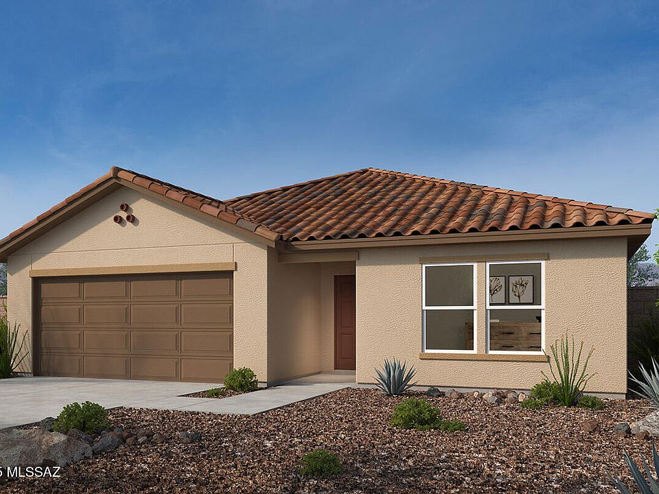 Brand new all single-story community at SW corner of Valencia & Houghton. This single-story home features a 9-ft. ceiling height, finished garage, and covered back patio. The kitchen showcases granite countertops with waterfall edge, 42'' upper cabinets in choice of seven colors, an island, pantry, and Whirlpool(r) stainless steel appliances. The den can be converted to bedroom 4. The primary suite boasts a walk-in closet, dual-sink vanity, and shower with cultured marble surround. This is a floor plan listing. Home is to be built, and buyer may choose features and homesites that are not included in this base price. Call today for more information. Base price range does not include lot premiums and/or additional upgrades other than included features. Property taxes are not available to date.