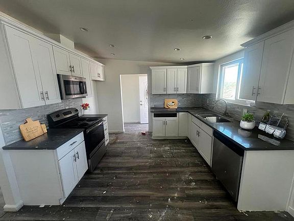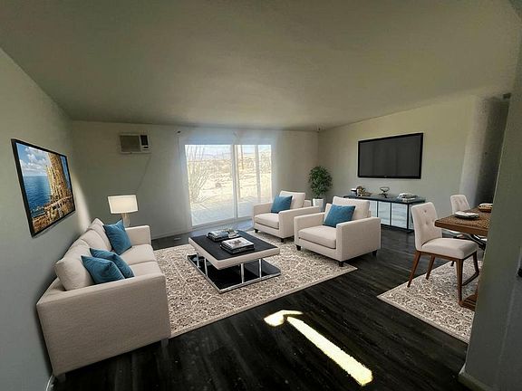 Welcome to this beautifully updated home located in the desirable Hanson Tract of 29 Palms! Just minutes from the entrance to Joshua Tree National Park, the 29 Palms Marine Base, and Tortoise Rock Casino, this home offers convenience and comfort in a quiet neighborhood. This 3 bedroom, 2 bathroom home features a fully updated kitchen with white shaker cabinets, sleek black granite countertops, stainless steel electric oven, microwave, dishwasher, an undermount sink with a pull-out faucet, and a stunning backsplash. The entire interior has just been freshly painted in a clean Swiss Coffee semi-gloss, and brand new luxury vinyl tile (LVT) flooring is being installed throughout. Both bathrooms have been upgraded with stylish tile shower surrounds. Enjoy outdoor living with a large fenced backyard, a covered patio, and additional fenced space for pets or storage. There's a two-car garage with drive-through access, and a circular driveway offers plenty of parking. Comfort is ensured with a central swamp cooler and individual wall AC units in each room. Don't miss your chance to rent this charming and modern home in one of 29 Palms' most sought-after areas! Contact today for more details or to schedule a showing.