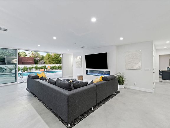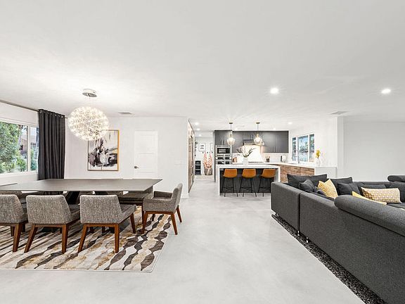 Welcome to this gorgeous, 2,226 sqft mid-century home that exudes modern elegance. Situated in the highly sought-after South Palm Desert neighborhood. This home offers an ideal floor plan, stained concrete flooring throughout, loads of natural light, 3BD, 3BA (2 en suites) and a den/office. As you enter, an open floor plan greets you with the views of the backyard, open living space and stunning stackable wall to wall sliders. The kitchen boasts warm toned custom cabinets, beautiful tiled backsplash, light toned quartz countertops, high-end appliances and a great island to gather at. The laundry room is off the kitchen and pool room with direct access to the 2 car garage. The backyard offers several areas for lounging, entertaining and plenty of lawn space for play, pets and even a future casita. Buyers to assume the solar lease. Come see for yourself what this home has to offer.