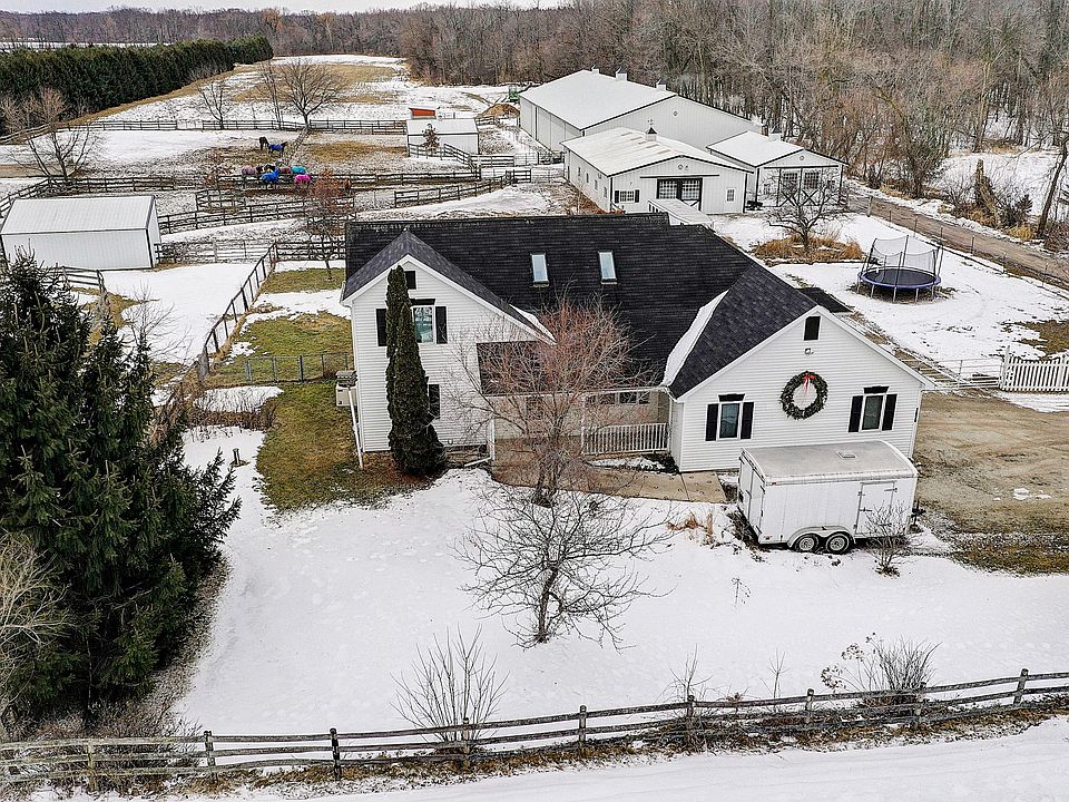 Rare opportunity to own a turn key equestrian farmette on the Caledonia trail system.4 patio doors and loads of windows offer great views of the paddocks and horses. 2 fireplaces,hardwood floors, plus much more.7 stall Morton built barn w/tack room, 60x120 indoor arena, 2 run in sheds, plus 24x36 additional garage. Nelson Waterers, well maintained fencing. Location is excellent! Right on the Root River Trail & next to Caledonia Greenspace Tracks Trail so you can enjoy 60+ miles of riding. Close to I94 and downtown Milwaukee. Claim your space in this unique horsey neighborhood!