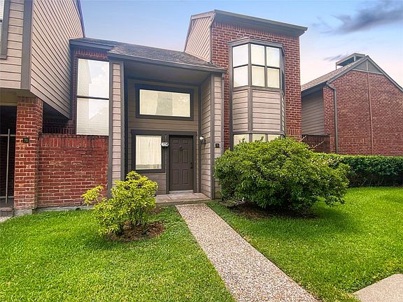 Peaceful, quiet, very well-maintained and guarded townhome community just steps from the Medical Center and upcoming TMC3. Also near Hermann Park, Houston Zoo, Museum District, golf, shopping and more. This charming townhome provides comfort, privacy and a wonderful floorplan offering a spacious living area with new laminate flooring, fireplace and views of a private, decked patio area with banana trees. The kitchen has granite counters, custom backsplash and plenty of storage. Upstairs is the secondary bedroom, full bath and the huge primary bedroom featuring soaring ceilings and large windows overlooking the enclosed patio with banana tree leaves rising to the second level creating a seamless indoor-outdoor connection. The massive walk-in closet offers additional storage through a secondary door behind the closet. Attached 2-car garage for convenience. Don’t miss the community pool, tennis court, and other rec facilities. New A/C in 2022, 2023. Refrigerator, washer, dryer included.