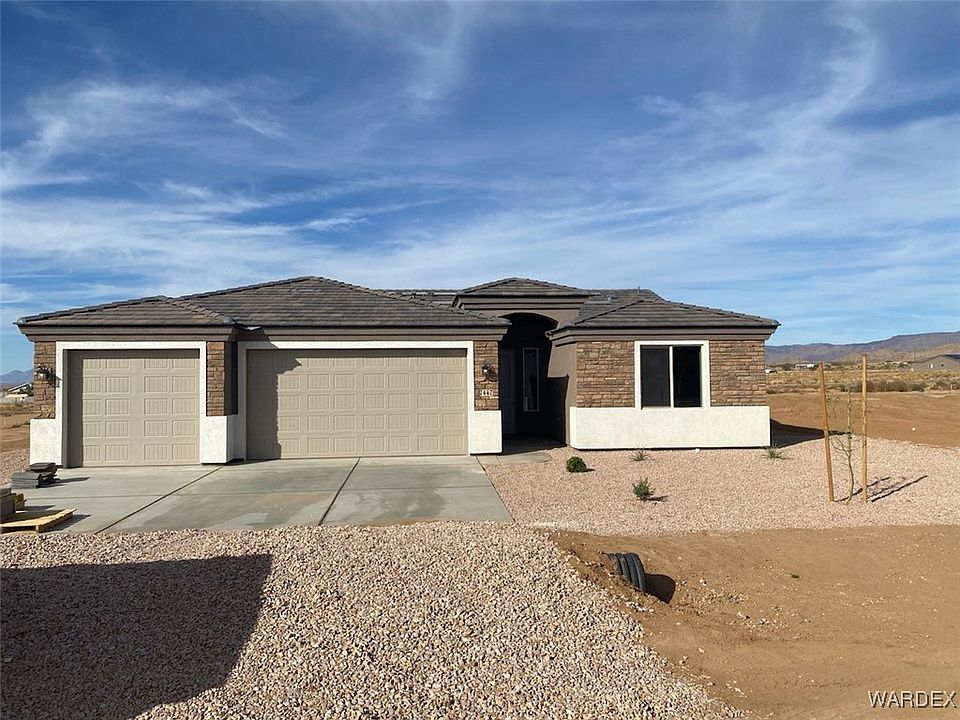 This brand new home (a Desert Rose 1472 3-car model) has a two/ten year new Home Buyer's Warranty. This home includes many upgrades: an open floor plan, split bedrooms, granite countertops, inside laundry room, a walk-in closet in the master suite, tile roof, front yard landscaping with automatic watering system, and many more features.