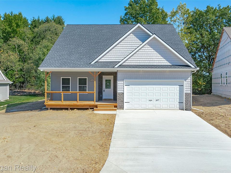 $5,000 BUILDER INCENTIVE towards Closing Costs/Appliances/Rate Buy Down! Looking to downsize?? Here is your chance with this move in ready, amazing new construction Ranch located in a beautiful community. The plan features 3 bedrooms, 2.0 baths with a full basement. The entire home has 9 foot ceilings and a cathedral ceiling in the living room and kitchen. Kitchen has Quartz counter top, a Quartz island with a ceramic backsplash and a walk-in pantry. Beautiful LVP throughout except for plush carpet in the bedrooms. The primary bathroom has ceramic flooring and ceramic wainscot. Primary bedroom has a sizable walk in closet. Thoughtfully designed family entry has mud room/laundry room. Step into your own personal cafe-meets-cocktail-lounge with the beautifully designed bar/nook that features glass shelves and a sleek ceramic backsplash. Thoughtfully positioned to serve as both a morning espresso stop and an evening unwind zone. On those cold Michigan winter days cuddle up next to the beautiful fireplace. Lastly, home features Pella windows. This beautiful home is located in the Fountain Village of Davisburg at a quiet cul-de-sac. Several photos are virtually staged. Schedule your appointment today! NEW, NEW, NEW - No need to worry about any repairs in the near future!
