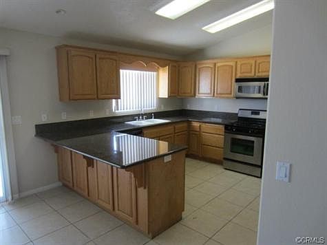 Awesome opportunity for a 1700+ sq. ft. 3 bedroom 2 bath turnkey home in the heart of Yucca Valley. This large home features cathedral ceilings in living room, custom fireplace, custom paint scheme, new ultra plush carpet in living areas. Kitchen features large wrap around cabinets topped by black granite counter tops, stainless steel appliances, and tile flooring. The rooms are all good size with a large master bedroom w en suite featuring a large soaking tub and separate shower stall. His and her sinks again with the matching granite, and custom light fixtures throughout house. The garage features freshly painted finished walls, and a roll up garage door. There is also a a fully fenced back yard and nice covered porch off of the back kitchen sliding door. This home is turn key and looking for the right family to set furniture down and enjoy. Brokered And Advertised By: Harcourts Prime Properties Listing Agent: ZACH HARRIS