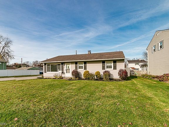 Welcome to this beautifully updated slab ranch located on a corner lot in Mentor on the Lake! Offering 3 spacious bedrooms and 1.5 baths, this home is move-in ready with a host of modern updates throughout. Step inside to find all-new doors, window shades, and plush carpeting in the bedrooms and living room. The living room boasts a large picture window, letting in plenty of natural light. Updated LVT flooring flows through the kitchen, bathrooms, and laundry room, while fresh paint and new fixtures add a polished, modern feel. The eat-in kitchen has newly painted cabinets, all new hardware, and a convenient double sink. The bathrooms have been thoughtfully updated for a fresh, contemporary look. All bedrooms come with ceiling fans for comfort, and the home features central air for year-round climate control. The laundry room/mudroom offers a back door leading to a large covered patio, perfect for relaxing outdoors or hosting friends and family. A paved pathway takes you to the extra-deep, 28'x20' heated garage, providing plenty of storage space and room for projects. The fully fenced backyard offers privacy and includes a shed for additional storage. The corner lot provides plenty of outdoor space! Don't miss out on this delightful home! Schedule a showing today to see everything it has to offer.
