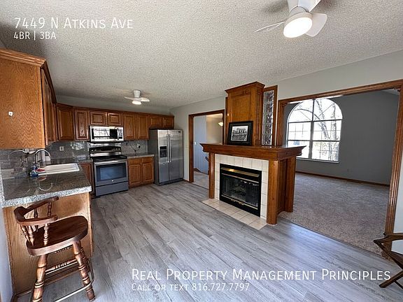 Welcome to this amazing 4 bedroom, 3 bath house located in a peaceful cul-de-sac in the Northland of Kansas City, MO. This home features vaulted ceilings, a large deck perfect for outdoor entertaining, a finished basement for extra living space, and off-street parking for convenience. The large fenced backyard provides privacy and space for outdoor activities. Inside, you'll find a master bedroom with an en suite bath, a cozy see through fireplace, luxury plank flooring, and carpet throughout. Additional amenities include a storage shed, 2 car garage, and a gas fireplace for those chilly evenings. Deposit free living is available through Obligo, making it easier than ever to make this house your home. Don't miss out on this fantastic opportunity to live in a beautiful house in a desirable location.