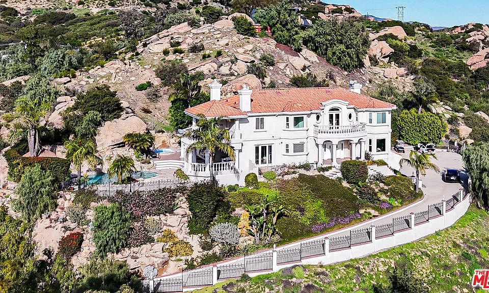 Custom Luxury Estate Carved Into the Serene Mountainside in Prime West Hills! Sitting on a Huge 1.45 Acre Lot, this private gated estate offers unlimited panoramic views from every room & features classic design elements & upgrades throughout. As you ascend up the private driveway, you are greeted by a large courtyard & grand entrance featuring dual-height ceilings, chandelier, & spiral staircase. Huge formal living area w/ freestanding dual-sided fireplace. Dining room. Family room w/ 2nd fireplace. Open concept kitchen w/ quartz countertops & adjacent dining area w/ access to backyard for al-fresco dining. Luxurious Master Bedroom Suite w/ fireplace, sitting area, private balcony, & marble-lined bathroom w/ dual vanities, jetted tub w/ view window, & standing shower. Guesthouse w/ separate entrance & private driveway, featuring 2 beds/2 baths. Resort-style backyard w/ sweeping canyon & mountain views featuring a heated rock formation pool, hot tub, waterfall, covered patio w/ outdoor dining/bar/tv area, & gazebo - perfect for entertaining! 3-car garage w/ plenty of courtyard parking. A private retreat from the city that is just minutes from the best shopping, dining, & entertainment the area has to offer. A truly unique opportunity that is not to be missed!