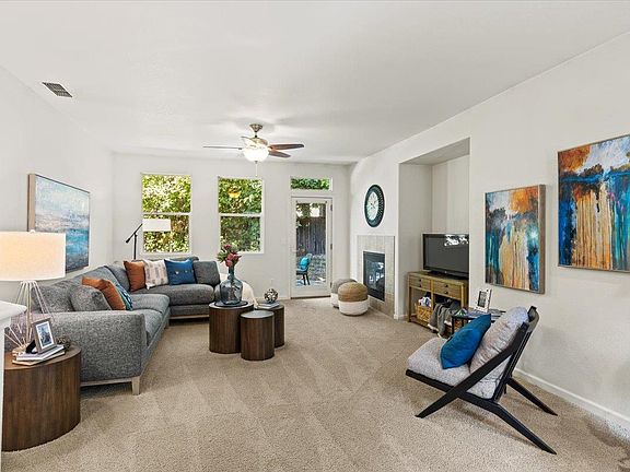Rare Single-Story Retreat in Coveted Stock Ranch! Experience refined living in this beautifully designed 4-bedroom, 2-bath home where elegance meets comfort. From the light filled entry to the expansive great room with a cozy gas fireplace, every detail promotes warmth and flow. The formal dining room is ideal for sophisticated gatherings, while the gourmet kitchen complete with appliances and a charming breakfast nook invites culinary creativity. Soaring ceilings and wide hallways enhance the serene ambiance. Unwind in the luxurious primary suite featuring a spa-inspired bath with soaking tub, walk-in shower, dual vanities, and a spacious walk-in closet. Three additional rooms offer flexibility for bedrooms, offices, or creative spaces. Enjoy California evenings on one of three patios: a covered front porch, a shaded side patio, or a private backyard retreat. Walk to Van Maren Park, trails, playgrounds, and nearby shopping including Costco and Sam's Club. Includes washer/dryer, low maintenance yard, and a two-car garage. Rarely available don't miss this exceptional single-story opportunity!