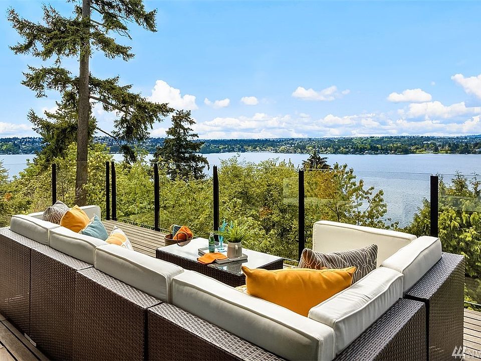 Modern. Brilliant. Light-filled. Stunning Western lake & mountain views from nearly every room of this 5 BDR home. Clean lines & walls of windows bring in the outdoors in. Perfect blend of casual living & designer style. Dramatic living room w/ steel fireplace & clerestory windows +family room & office. Epicurean kitchen w/ quartz surfaces, S/S appliances, walk-in pantry & spacious dining. Enjoy sunsets on wrap-around IPE deck. Launch your kayak/paddleboard from your own lake access this summer!