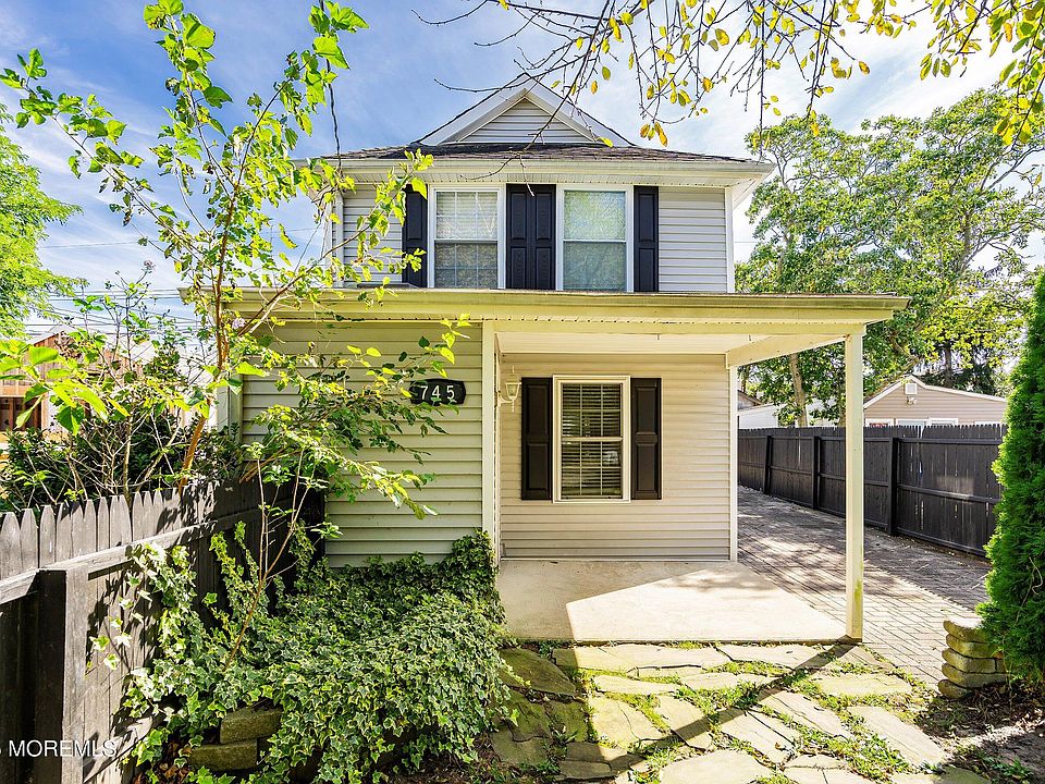 Bright and fully renovated two-level cottage less than a mile to the beach, privately set in a desirable neighborhood bordering Spring Lake. Enjoy a covered front porch, fenced yard, side patio with retractable awning, outdoor shower, driveway, and large storage shed for bikes and beach gear. The first floor offers an open layout with vinyl plank flooring, a sunny living room with sliders to the patio, and a modern kitchen with breakfast bar, vaulted ceiling, white Shaker cabinets, stone counters, stainless steel appliances, and stacked washer/dryer. Upstairs, a spacious primary suite features a remodeled full bath. Renovations in 2019-2020 include new HVAC, updated electric, and plumbing fixtures. Professional photos will be on line shortly.