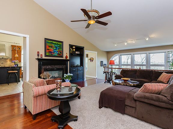 Beautiful Open Atrium floor plan with 5-bedrooms and over 4,200 square feet of total living space. Hardwood floors, vaulted ceilings, tile floors, 2-fireplaces, finished lower level and a state of the art kitchen make everything about this home truly livable. You will absolutely love the spacious, open kitchen and breakfast room with island, quartz counter tops, tile backsplash, separate Refrigerator/Freezer, 5-burner GE Monogram gas range, a wine refrigerator, built in desk, window seat, a gas fireplace and much more. The Master Bedroom features a walk-in closet and bath suite with tile shower walls and a separate jetted tub. Easy to entertain with this spacious open plan & finished lower level, complete with large family room and wet bar area with full size refrigerator, wine refrigerator & another gas fireplace. This is a great place to call home!