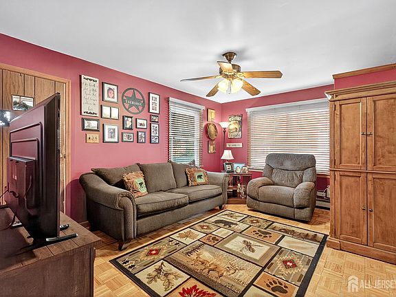Lovely, 2-bedroom, 1-bath home offering comfort, style, & outdoor enjoyment. Great alternative to a condo. Bright and sunny living room featuring parquet flooring, crown molding & ceiling fan w/ an open flow to Kitchen boasting tile floors, wainscoting w/ chair rail, oak cabinets & center island w/ breakfast bar, drawers, & extra storage. A door leads to a deck & spacious fenced backyard, perfect for relaxing or entertaining. A cozy enclosed front porch area offers washer/dryer & HWH. Both bedrooms are spacious the primary w/ carpeting, closet, & 2 windows; the second bedroom offers a wall of oak closets. The full bath includes a tiled floor, oak vanity, tub/shower w/ built-ins, & linen closet. Backyard highlights include a paver & a concrete patio, wood-burning fireplace, storage shed, planting beds, & a peach tree. Major updates: windows, roof, & siding all replaced in 2015. A warm, move-in-ready home w/ great outdoor living! Close to NYC Bus/train, shopping, all major roadways & waterfront park. Sold strictly AS-IS. No repairs or credits by seller. Buyer responsible for due diligence, inspections, and any municipal certifications and requirements.