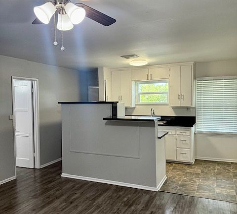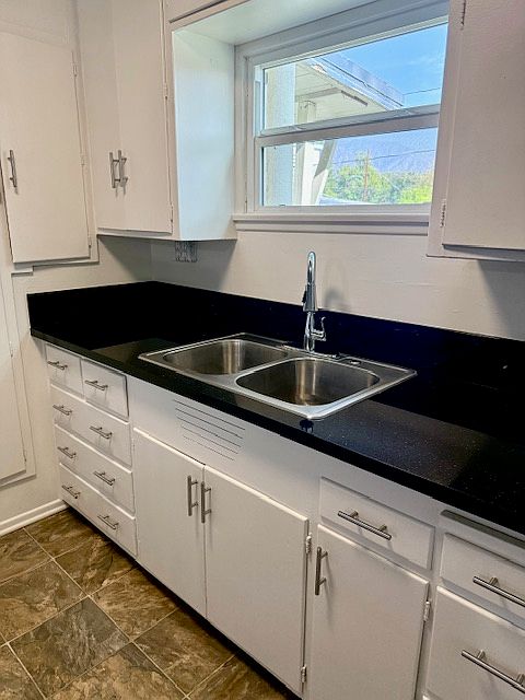 Vinyl in the bathroomFresh paintLaminate floorsBuilt in dresserGranite counters in kitchen