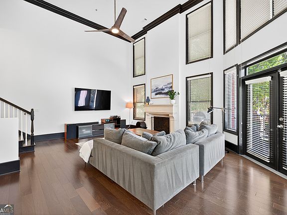 Welcome to this spacious and truly unique 4 bedroom, 3.5 bath townhome, located in the vibrant heart of North Atlanta. This stunning residence offers an exceptional blend of comfort, style, and convenience, perfect for both everyday living and entertaining. Step inside to find gleaming hardwood floors throughout the main levels and a beautifully renovated kitchen featuring sleek stainless steel appliances, marble countertops and large kitchen island. Unique soaring 20-foot ceilings in the living room create a dramatic and airy atmosphere, anchored by the only wood-burning fireplace in the community-a rare and cozy feature for those cool Atlanta nights. Enjoy outdoor living with two expansive wrap-around balconies on this corner unit, plus an additional private balcony off the lower bedroom, offering ample space for relaxing with a morning coffee. The thoughtfully designed floor plan provides generous living areas and seamless flow. With the nearby access point to PATH 400 and with future connectivity to the BeltLine, this home offers easy access to miles of scenic biking, walking, and running trails bringing the best of Atlanta's outdoor lifestyle right to your doorstep. Don't miss the opportunity to own this one of a kind townhome that combines luxury, location, and lifestyle in one perfect package.