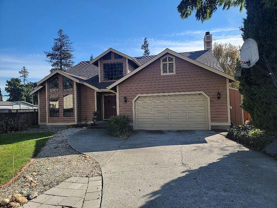 This home is located well off the street with a private drive and electrical security gate, so there's virtually no traffic/street noise. A very large yard, idea for children and pets. Very large deck and lots of grass and plants/trees. Very large living area, great for entertaining. Has a medium sized bar builted into family room. Higher 8 foot ceiling and vaulted ceilings in living room and master bedroom. Very large master bedroom with nice private balcony on second floor. Masterbath has double sinks, extra large tub, separate large double sided walk in shower, and bidet. Wood flooring throughout with exception of guess bedroom. Nice loft overlooking living room. Extra large guess bathroom. Large laundry room. Oversized 2 car garage. Nice sized attached storage shed. Woodburning/gas fireplace. Lots of light for indoor plants. 8 minute drive through town or long walk (25 minutes) to BART. (Google street view does not show correct house).
