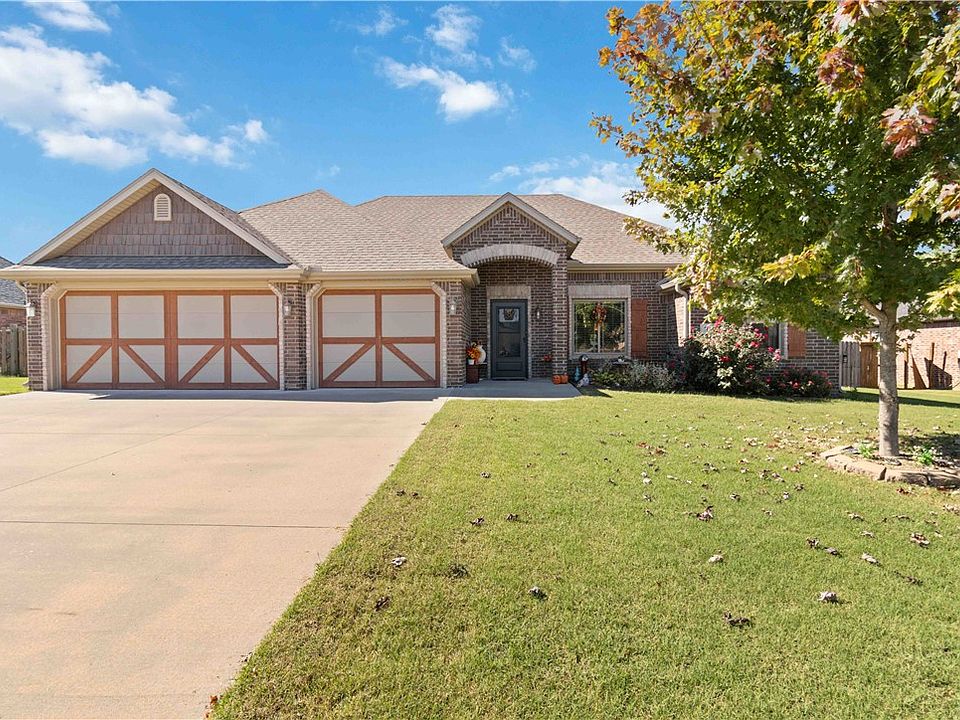 Built in 2019, this thoughtfully designed Cox-built home blends comfort, quality, and charm in every detail. Inside, you’ll find a spacious living area with a stunning dual-sided fireplace connecting the living and dining rooms, creating an inviting atmosphere for gatherings. Elegant crown molding adds refinement throughout, while the kitchen offers granite countertops, a gas cooktop, and built-in wall oven and microwave. The primary suite provides a relaxing retreat with a whirlpool tub, walk-in shower, and a generous closet that passes through to the laundry room. Two additional bedrooms offer flexibility for guests, family, or a home office. Step outside to enjoy the fenced backyard with an extended patio and 10×20 storage building —perfect for tools, hobbies, or extra storage. The three-car garage includes attic storage for seasonal items. Located in Battlefield Estates, you’ll love the peaceful setting, wide streets, and sidewalks—just minutes from schools, parks, and everything Pea Ridge offers.