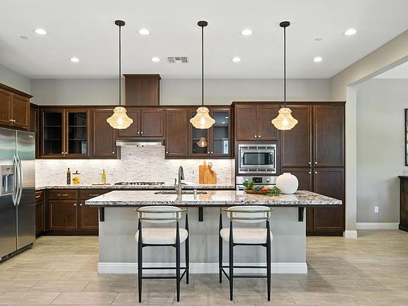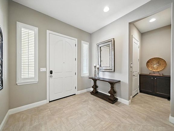 Immaculate and move-in ready, this beautifully upgraded single-story home in Morgan Hills sought-after Esperanza community offers modern elegance and comfortable living. Featuring tall ceilings, an open-concept floor plan, and designer finishes throughout, this home truly feels like new construction. The gourmet kitchen is a showstopper, featuring a massive center island, pendant lighting, and high end granite countertops, Bosch stainless steel appliances, soft-close cabinetry, and ample storage, perfect for both everyday living and entertaining. Expansive sliding glass wall doors lead to a covered California room, seamlessly blending indoor and outdoor spaces for year-round enjoyment. Step outside to a professionally designed backyard featuring Belgard pavers, offering both beauty and durability for outdoor enjoyment. Inside, bask in the comfort of plantation shutters, a laundry room, whole house fan, and a fully insulated garage with 220 wiring plus a water softener system for added efficiency. Additional highlights include a spacious primary suite, luxurious bathrooms, walk in closets, light-filled living areas, stylish flooring, and a finished two-car garage. Enjoy the ease of living in one of Morgan Hills most desirable neighborhoods.