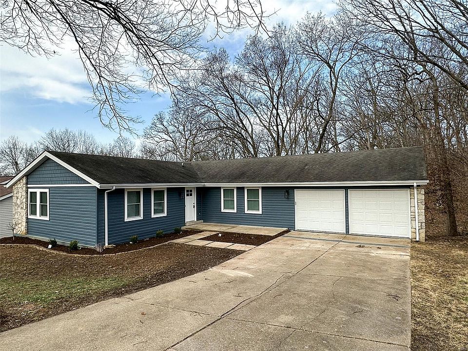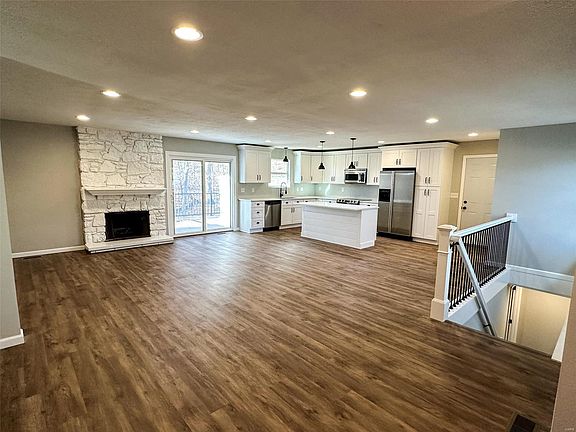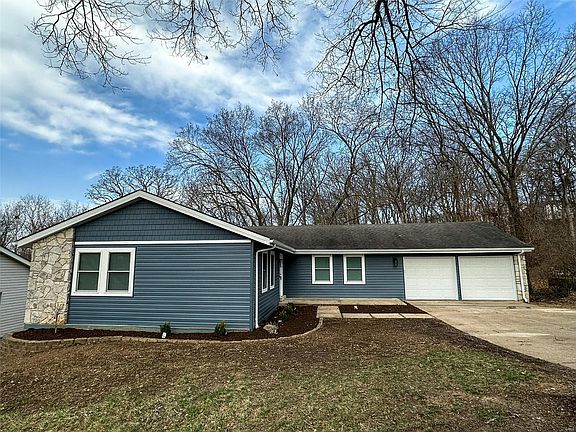 Large and spacious home w/ 4 bedrooms and 2 baths on 0.5 acre wooded lot. New windows, new doors, new vinyl siding. Freshly painted interior. New kitchen, all appliances included, new baths and rough in added in basement for 3rd bathroom. New carpet throughout. Large master bedroom w/ huge walk-in closet. Wood-burning fireplace. Walk-out lower level. New water heater, new furnace. Large sized private backyard. Great location. Minutes to Walmart and Costco. Quick access to Highway 40 270 and 44.
