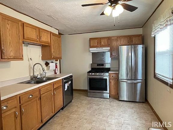 Cute as can be this 3 bed, 1 bath home welcomes you into the front LR, then to the eat in Kitchen w/all SS appliances (new 2019) to stay, Huge walk-in Pantry just off of kitchen is super nice! Spacious Fam Rm at the back has new sliding door to patio and fenced back yard. Large Laundry room with w/d to stay, nice closet space, and some new windows, new storm door on side. Off street parking and 1.5 C detached garage offers more storage space. GFA Furnace NEW 2019, Roof NEW 2021, and new ceiling fans are added updates. Low Utilities 12 mo avg: Duke $64.15/mo, Nipsco $49.396/mo, IN Am Water $36.38/mo. Conventional or cash financing. Located in area for easy access to State Hwy.