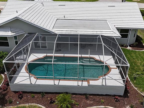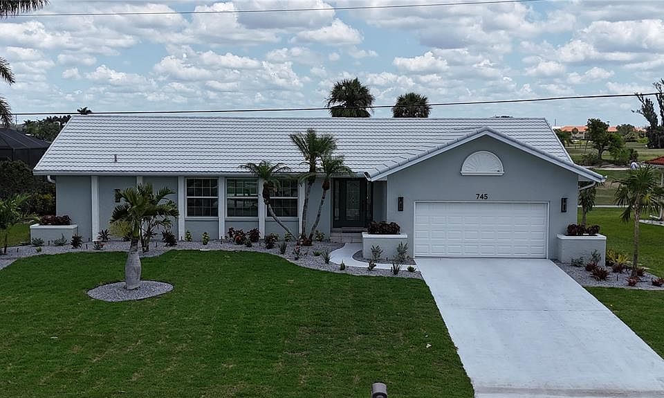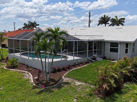 Welcome to this beautifully updated 3-bedroom, 2-bath pool home located in the highly sought-after Burnt Store Isles community, nestled along the golf course of Twin Isles Country Club. Boasting stunning curb appeal with fresh landscaping, new paint, and a brand-new irrigation system (2025), this home offers over 1,900 sq ft of light-filled living space with a split floor plan, ideal for privacy and comfort. Enjoy cooking in the upgraded kitchen featuring granite countertops and brand-new stainless steel appliances (2025), or relax in the spacious living and dining areas with multiple sliders opening to the screened lanai. Step outside to your private saltwater pool and take in breathtaking views of the golf course and surrounding ponds—perfect for morning coffee or evening entertaining. Recent upgrades include a new pool heater, interior/exterior paint, impact windows, and overhead plumbing. Located minutes from downtown Punta Gorda, shopping, dining, and Charlotte Harbor—this move-in ready home is Florida living at its finest!