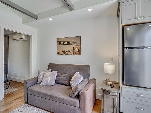 Surfer's Delight Furnished studio located steps to the beach. Furnished with a Murphy bed, desk, sofa and kitchen. Store you belongings and surf boards in the large storage shed in the rear. Enjoy evenings sitting outside on the patio. Walk to the trendy Leucadia Coastal district including restaurants and shopping. The unit has a washer/dryer and a nice side yard. The unit is located behind a larger office building. Tenant to pay $200/month for utilities.