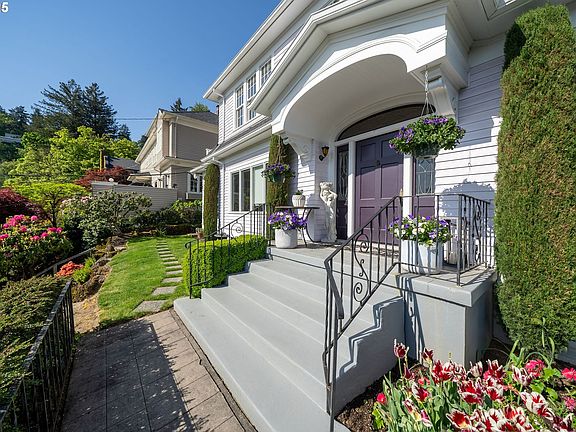 Welcome to one of Portland's popular, premier neighborhoods Kings Heights! Gracious 1920's Traditional proudly nestled into the hillside overlooking the City, offering the homeowner amazing 4 Mountain View's, Willamette River, Cascade Foothills, and City's amazing "ever changing" Vistas Day & Night. Period architecture greets you featuring spacious entry, higher ceilings, larger size rooms. Craftsmanship offering quality built-ins, wood floors, abundance of windows for natural light, wood burning fireplaces, wider hallways, all with comfortable floor plan for daily living needs & easy entertaining throughout! Elevated above the street for privacy as well as offering the homeowner and guests easy access from the quiet alley lane behind w/2 car garage, & parking pads for 2 to 3 additional cars. Main Floor features formal living room w/fireplace and dining room with unique period-built ins w/expansive views. Charming sunroom with wall of windows & 2nd fireplace adjoining the handsome home office/den room with ample bookshelves. A true Chef's kitchen featuring its own casual dining space which accesses exterior view deck, designer appliances, dual dishwashers, high end 5 burner gas range w/griddle, warming drawer, built in work desk & sitting area. Second floor has a unique 4 beds, 2 baths, and access to 2 view decks. Owner Suite has been remodeled over the years to enjoy updated dressing room, walk-in shower, dual sinks, & soaking tub. 3rd Floor offers Media Room and full 20's period bathroom as well as additional bedroom. Basement features laundry, storage, & additional bedroom & bath (Non-Conforming) LOCATION is a 10! Offering homeowner nearby proximity to Hillside Park, or all that beloved Forest Park has for recreation. Located in Lincoln School District offering the STEM Program for students. Short commute or walking distance to popular Alphabet District for Dining & Shopping. Nearby access WEST to HWY 26 to Nike, & Intel.