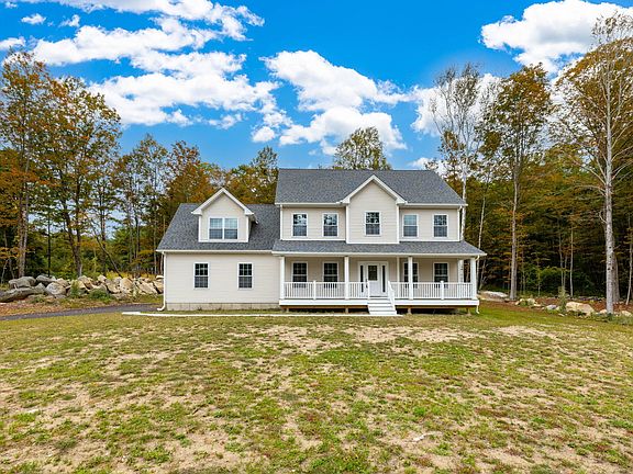 Brand new 2600 4 bedroom colonial ready for immediate occupancy! State of the art construction by local long time builder. House complete and full of upgrades! Open plan with hardwood flooring site finished with gas fireplace in living area. Large kitchen with oversized expanded center island offers high end cabinetry, appliances and custom granite tops throughout. 9' ceilings. Finished laundry area upstairs. Amazing primary suite with large attached bath that offers corner jetted jacuzzi tub, separate large shower and double sink vanity with granite. Private 1.26 Acre lot! Lots of privacy, level and surrounded by boulder rock wall. Lot backs up to over 10 Acres of unbuildable land to ensure peaceful and quiet setting! House sits back offering side entry garage, walkways, composite full front porch and large rear deck. Welcome home for the fall in this brand new home! Only 15 minutes to UCONN and Hartford!