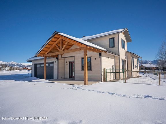 Modern farmhouse with clean, crisp lines, large, bright sunny windows! This is the in-town Driggs home you don't want to miss! Dark, solid surface stone counter tops & farm sink provide the perfect contrast to the sparkling Zellige tile backsplash, gleaming cabinetry, and stainless appliances. Forced hot water heat is the heart of the house, with Runtal hot water radiators on the upper levels, and heated floors on the lower level. Quality propane fire place with authentic stone surround and mantel is a center piece of the great room. White washed oak hardwood floors, extensive tile finishes, one piece toilets, built-in closet organizers, over-sized garage, office, lower level family room, and fenced yard are just some of the additional features of this home.