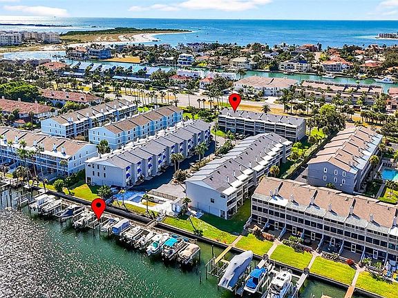 Available Now! Custom-appointed 2BR, 2.5BA high-end townhome with exceptional craftsmanship and modern coastal design. NEW Boat Slip with 10,000 lb DECO lift, remote control, water, and electric — no drawbridges, only 5 minutes by water to the Gulf of America! Gourmet Kitchen includes Custom shaker cabinets, marble countertops with dual waterfall edges, Bosch stainless steel appliance ensemble, large wine cooler, and separate beverage center. Luxury Interiors: Impact-rated windows and doors, custom-fabricated modern wood and steel cable staircase railing, designer lighting, crown molding, and a custom electric fireplace for everyday ambiance. Primary Suite Oasis: Quartz countertops, dual vanities, walk-in shower with dual rainfall heads and bench, high-end soaking tub, and instant hot water in just 20 seconds. Community Upgrades: Brand-new roof and redesigned pool. Pet-Friendly and centrally located on Tierra Verde, directly on running/bike trails. Minutes to award-winning St. Pete Beach (7 min), downtown St. Petersburg (12 min), Tampa International (40 min), and Sarasota (45 min). Experience elevated coastal living where luxury meets lifestyle — your boat and next adventure await just steps from your back door. Boat slip is added in HOA fee - HOA fee is $1085 a month and an additional $50 a month for the boat slip. Furniture is negotiable.