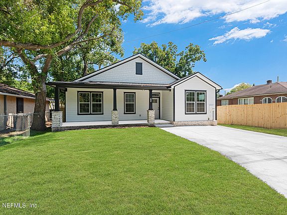 Brand new 4BR/2BA Riverside Home! This new build combines modern finishes with Riverside charm. Exterior highlights include a brick accent and welcoming front porch. Inside, luxury vinyl plank flows through the family room, dining, kitchen, hall, and bedrooms. The kitchen shines with quartz countertops, 42'' cabinets, crown molding, soft-close drawers, tile backsplash, and stainless steel appliances. Guest bath features tile floors, quartz vanity, and tile shower/tub combo. Generous guest bedrooms and a spacious owner's suite with frameless glass shower and quartz finishes provide comfort and style. Trimmed windows, 5'' baseboards, and recessed lighting add detail. Enjoy a fenced backyard with deck for outdoor living. Ideally located near Five Points, restaurants, and shopping.