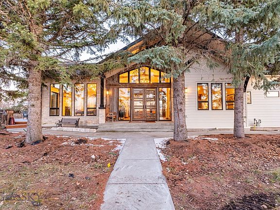 Dream Home with Breathtaking Views & Designer Touches. Welcome to your mountain-modern retreat! This stunning, fully remodeled home blends rustic charm with elegant finishes in every corner. Step inside to discover a spacious open floor plan flooded with natural light from walls of windows. The heart of the home is a chef’s kitchen designed to impress—with top-of-the-line appliances, custom cabinetry, a generous island, & plenty of built-in storage for a clean, effortless look. Whether you're entertaining guests or enjoying a cozy night in, the south facing wall of windows will grace you with a stunning view of the Spanish Peaks making this space perfect for every occasion. Rustic wood beams, high-end finishes, & thoughtful details throughout create a warm inviting ambiance. The oversized fireplace with stone hearth in the living room beckons for you to sit & warm yourself while enjoying a cocktail made at the wet bar. Some additional interior features include all en-suite bedrooms, basement theatre room & gym space. Multiple decks & outdoor living spaces, complete with hot tub, offer the ideal spots to take in the sunrise, host gatherings, or simply relax & enjoy the views. The yard is surrounded by hedges for privacy, a mature lawn, with towering pines that create an alpine feel. The sprinkler system was installed last fall to allow for any further landscaping you could dream up. This property has been meticulously maintained as horse pasture—sprayed annually & carefully under-grazed to preserve its health & productivity, and additional acreage could be negotiable. It's ready for your livestock, with a versatile barn already designed with horse stalls in the back & a workshop up front. Whether you’re an equestrian, hobby farmer, or just seeking wide-open space, the possibilities here are endless. With no covenants, no HOA, & no subdivision restrictions, you're free to reimagine the property entirely to suit your vision. This home is a rare find—move-in ready, beautifully finished & designed for comfort & style, all within 10 minutes of downtown Bozeman. Don’t miss your chance to own a one-of-a-kind property that truly has it all!