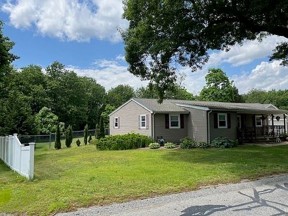 OPEN HOUSE CANCELLED !! This One Level Ranch style home has so much to offer with almost 1700 sq feet of living space. Enter from the front Farmer's porch into a tiled foyer with double closet. The living room flows into the extra spacious kitchen with tile floor, ceiling fan and so much cabinetry you will not be looking for storage space. Open the slider and walk out onto the 12x40 deck with Trex decking and vinyl posts to enjoy your morning coffee and privacy of 1.25 acres! If the sun get to be to much just use the electric awning for some shade. The1st large bedroom is off the kitchen on the garage side of the house. The second and third large bedrooms are down the hallway at the other side of the house. The 2 car garage is oversized with tons of storage and great for your vehicles with our New England snowy nights. This home boasts Central Air, a separate panel for a generator in case of power outage, and a full dry basement. Massasoit State Park just a minute away!!