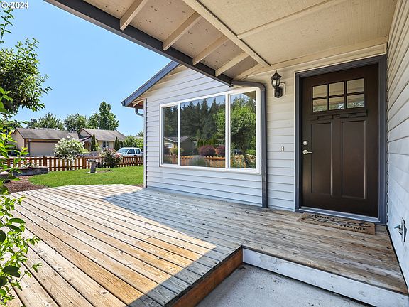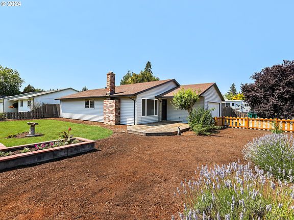Welcome to this charming one-level ranch situated on .18 acre corner lot. Step inside the living room to an inviting space boasting a cozy wood-burning fireplace, and picture window, flooding the room with natural light. The kitchen is always the center for family and friends and you won't be disappointed in this spacious kitchen, hosting a cooking island, maple cabinets, an eating bar, a dining area, stainless steel fridge, electric range/oven, dishwasher, and microwave in a convenient built-in. Sliding doors open onto the back deck, creating a seamless indoor-outdoor flow. There are 3 bedrooms including a primary en-suite with a walk-in closet and separate shower area. Fenced yard, tool shed, dog kennel/chicken coup, and plenty of room to garden! The bonus is the hard-to-find 30ft RV or boat/trailer parking. This convenient location is near to parks, schools, shopping, Edgefield & freeway access!