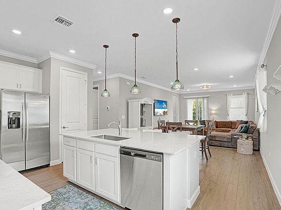 Turnkey FULLY FURNISHED 3/2 immaculate home located in an exclusive to 55+ active adults GATED community. This rarely lived in home is located on a cul-de-sac lot backing up to the natural PRESERVE offering no back neighbors for privacy. The open floorplan with 9ft ceilings has a gourmet kitchen with Quartz countertops, large island w/bar, S/S appliances and a GAS range for immediate cooking. Beautiful tile plank floors throughout home, Crown molding, ceiling fans, IMPACT glass, a covered front porch and a covered back lanai w/ brick pavers and GAS hook-up overlooks the peaceful preserve. The resort-style clubhouse offers a heated pool/spa, fitness center, cafe, card room, movie theater, tennis, pickleball and many planned activities. Convenient location near Publix, FL TNPK and I-95