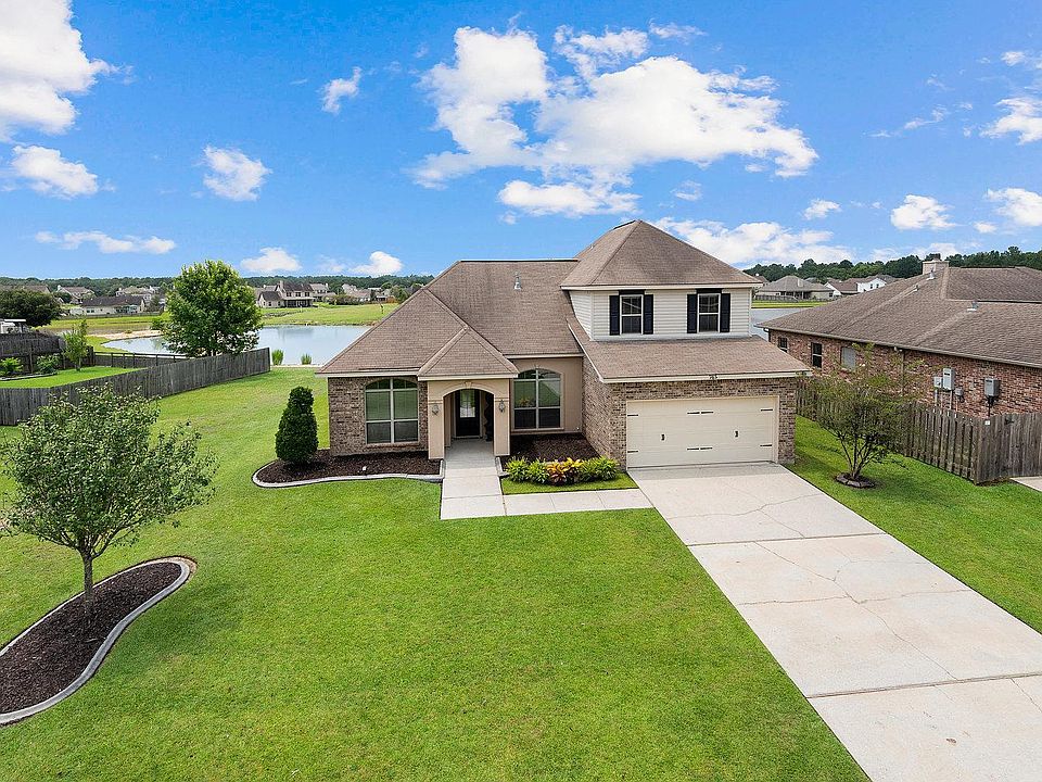 Gorgeous views of the sunset in this beautiful 4 bedroom 2 1/2 bath waterfront home for lease! As you walk in the front door you will notice an office or bonus room to your right and a formal dining room to your left. There are granite countertops in the kitchen with an undermount sink, island and stainless steel appliances including: French door fridge, 5-burner gas stove, built-in microwave & dishwasher! The living room includes wood floors with a mounted Smart TV and electric fireplace. Pass the half bath as you check out the laundry room to your right which includes washer and dryer. To your left is the primary bedroom which has a mounted TV and en-suite bathroom. This bathroom includes a double vanity, separate shower, garden tub, mounted TV and huge walk-in closet. Three bedrooms are upstairs along with linen closet and walk-in attic. Park your cars in the two car garage and relax in the nearby community pool. This home has just had a new roof put on and the exterior has been pressure washed. No smoking. Minimum 700 credit score. Income minimum 3 times rent. Seller chooses pest control service and lawn care service and frequency.