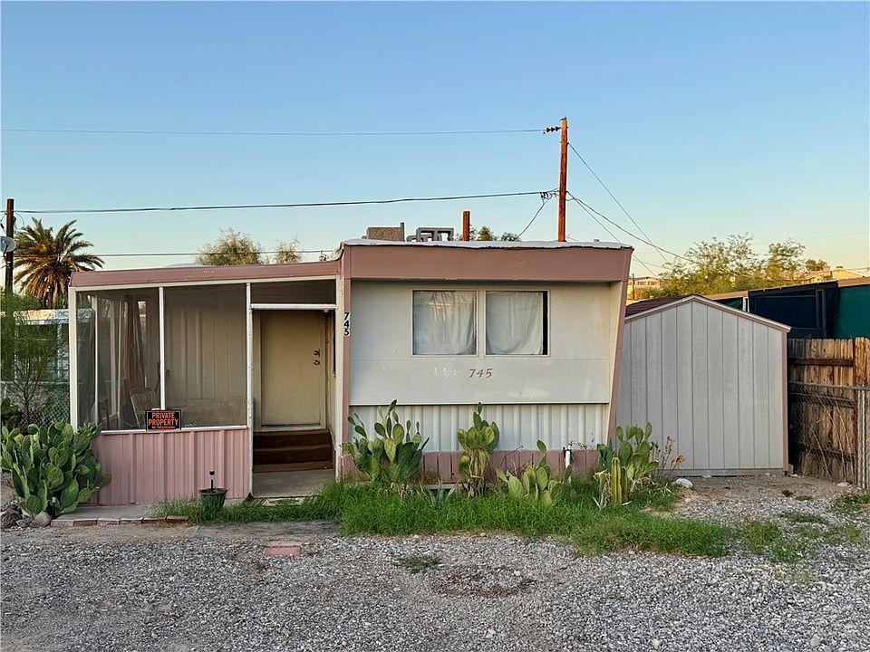 Here's your chance to own an affordable home near the Colorado River and Rotary Park! This charming 2-bedroom, 1-bathroom mobile home offers approx. 720 sq. ft. of living space plus a covered porch, a fenced backyard with chain link, and a storage shed. This is a cash-only, as-is sale, perfect for someone looking for a full-time residence, vacation spot, or investment property. The home has been updated since originally built and includes multiple wall unit A/C systems, appliances, outside laundry hookups, and furniture that will stay. With no HOA and no age restrictions, this property gives you flexibility and freedom. Best of all, you'll be just minutes from Rotary Park with its beaches, boat launch, dog park, pickle ball courts, sport fields, and more. No warranties expressed or implied. Buyer to verify all pertinent information.