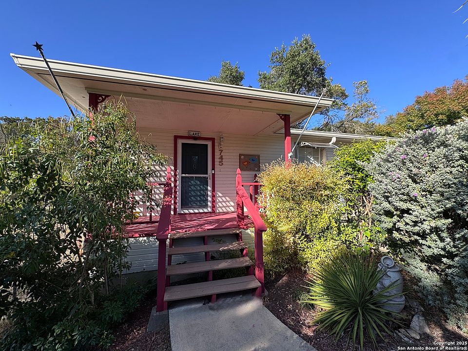 Charming 2-bedroom, 2-bath home on a 0.25-acre corner lot in Canyon Lake. This property features mature trees and established landscaping. The front porch has been repaired and freshly painted, and the back porch has been fully replaced and painted as well. Additional exterior updates include new gutters and a rainwater collection barrel. Inside, the home offers an open floor plan, a spacious kitchen, and a primary suite with a large walk-in closet and full bathroom. The secondary bedroom functions well as a guest room or home office. The lot includes a large carport, fenced front and back yard areas, a rear courtyard, and a sizable storage building. The corner lot layout provides extra open space and a larger overall feel. Recent system updates include a roof replacement in 2019, HVAC replacement in 2024, water heater replacement in 2025, and a septic pump-out in 2025. Located in Canyon Springs Resort with access to a neighborhood pool, park, playground, and public boat ramp. Only minutes from local dining, shopping, the Guadalupe River, and Canyon Lake recreation. Approximately 40 minutes from San Antonio International Airport. Suitable for full-time living, a second home, or an investment property. Schedule your showing today!