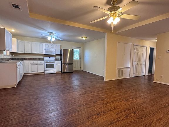 Rear courtyardOpen floor planNew guttersLarge carportSizable storage buildingRainwater collection barrelSpacious kitchen